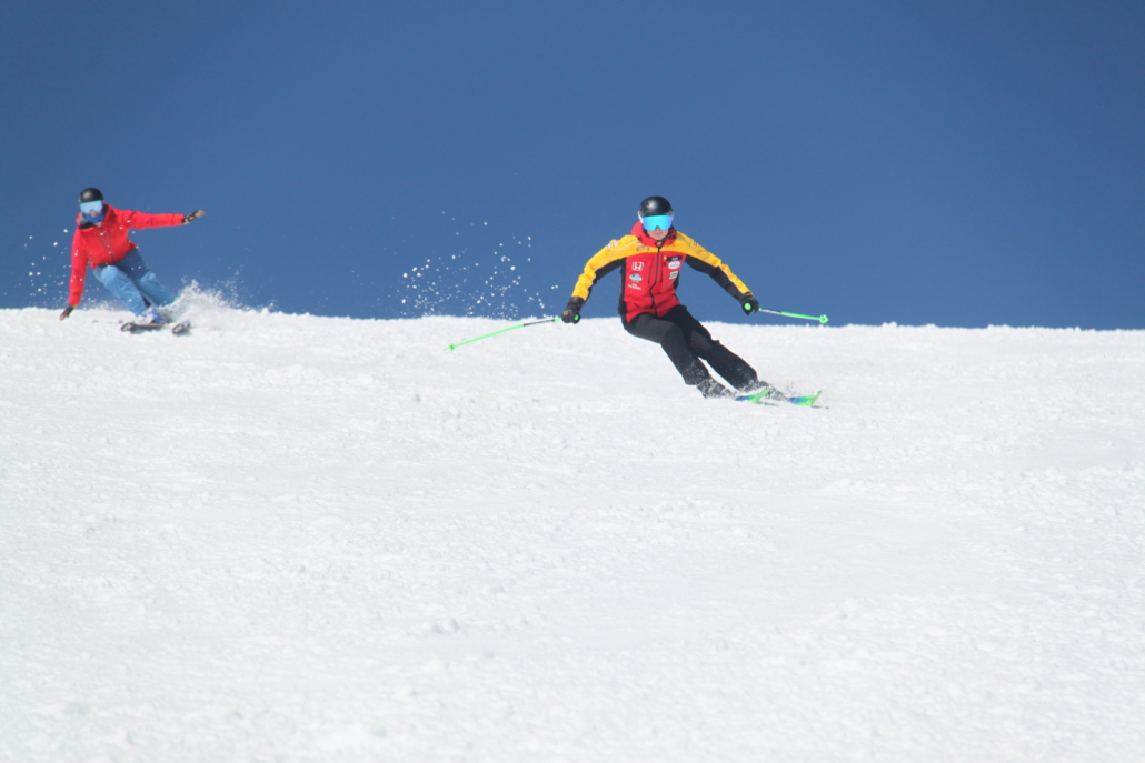 Wij vinden het belangrijk dat ons team lesgeeft volgens de nieuwste methodes en daarom besteden we veel aandacht aan lerarentrainingen. Onderdeel hiervan is de jaarlijkse sneeuwtraining op de gletsjer van Kaprun in Oostenrijk. Hier dagen we ons team uit met allerlei disciplines zoals slalom, buckels en techniektraining.